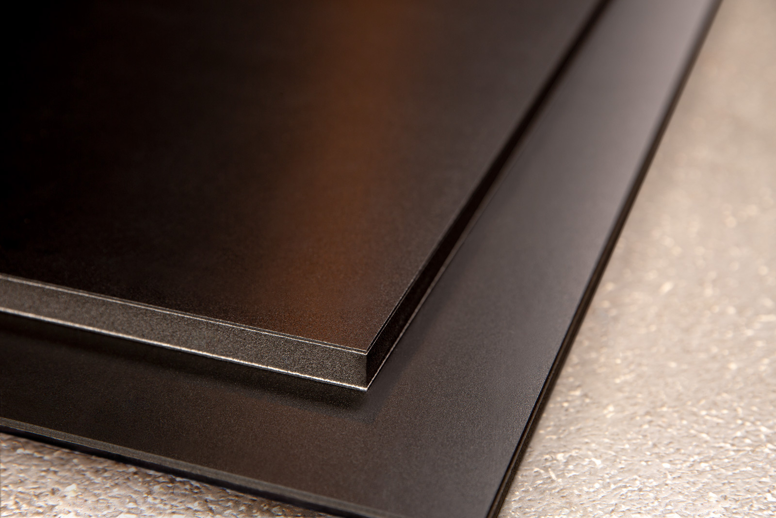 Il pannello di arredo Dbond ® è costituito da un’anima di polietilene molto leggera (meno di un grammo a centimetro quadrato) in mezzo a due strati di alluminio laccati protetti da un foglio removibile di pellicola protettiva.